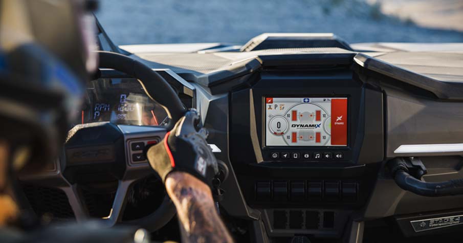 - 7" Display, powered by RIDE COMMAND, featuring: DYNAMIX 2.0 visualizer, built-in GPS, Group Ride (cell-based or GPS-based), topographic mapping, Bluetooth & USB smartphone connectivity, AM/FM & weather radio (accessory speakers required - sold separately), in-vehicle communications capable with optional Sena headsets.